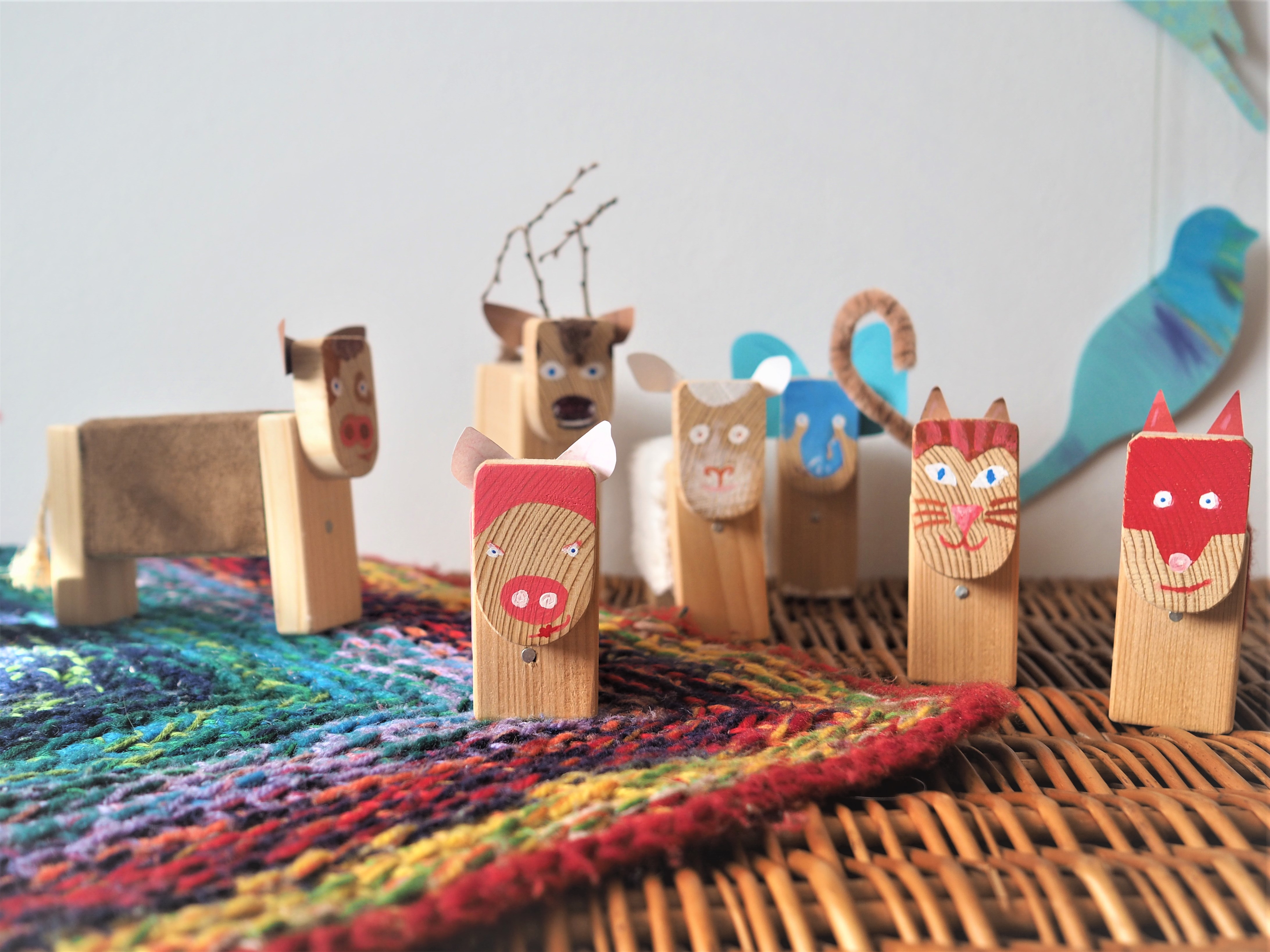 - Holzklötze für 1 Tier (1x Kopfteil, 1x Bauchteil, 2x Fußteil)